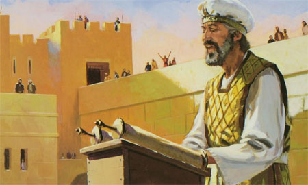 Первосвященника, записывающего священные писания звали Ездра (в исламе его называют Узайр). Он воссоздал еврейскую государственность на основе закона Торы (закона Моисея), написал священную книгу Ездры.