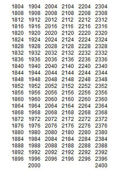 Порядковые числа, которые заканчивались на два нуля, принято было относить к не високосным, если их нельзя было разделить ровно на четыреста.