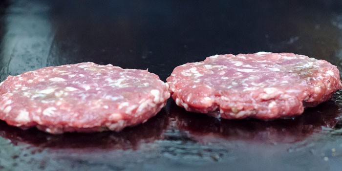 - Пожарить котлетки для бургеров из свино-говяжьего фарша можно без масла, не забыв придать им правильную сплющенную форму.