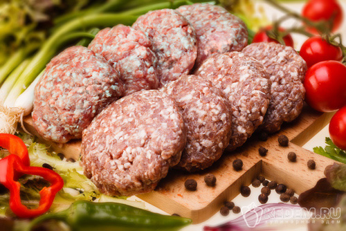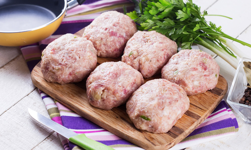 Если говорить о классическом жареном блюде, то для него используется преимущественно комбинированный фарш, часть которого обязательно составляет сочная свинина. Профессионалы не рекомендуют брать куриный или индюшачий фарш для котлет на сковороде, поскольку он может стать слишком сухим при жарке. Некоторые повара делают перекрученный свино-говяжий тандем с небольшим количеством сала – так блюдо получается особенно нежным.
