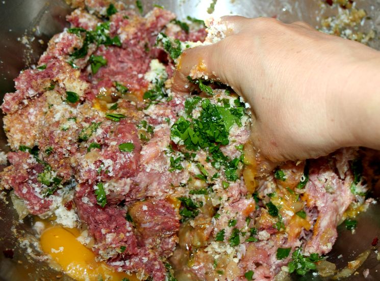 - по полкило свинины и говядины (кило готового фарша);