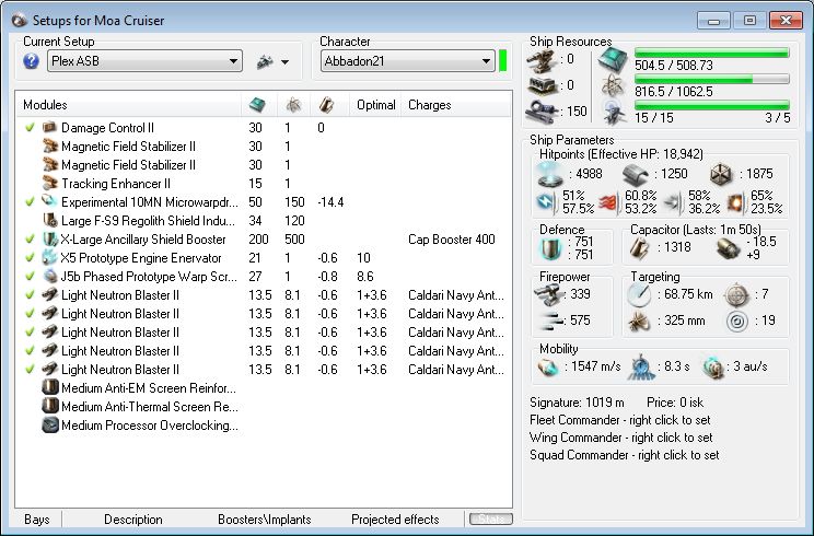 The tank on this Moa is more powerful than many of the Battlecruisers in this guide, but only temporarily! It is VERY important that you pulse your X-Large ASB, overload it, and NOT waste it.