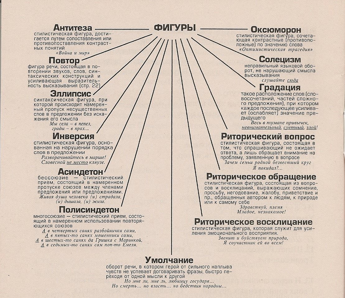 | Эпифора | Применение одинаковых слов и выражений в конце соседних предложений. Такие фигуры речи придают тексту эмоциональность, позволяют четко передать интонации. |