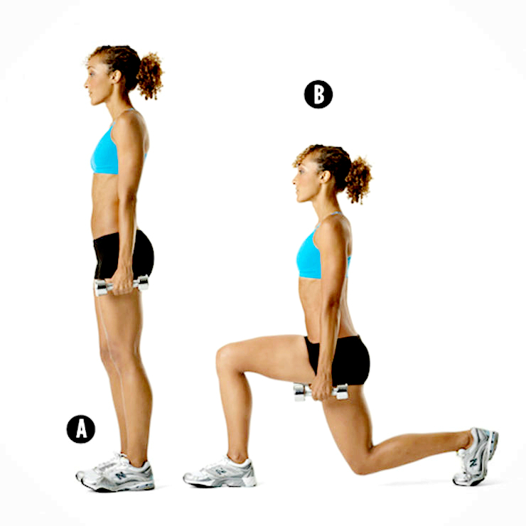 Самое ключевое упражнение для благовидной попы. Для похудения они неэффективны, потому что подсобляют конкретно нарастить мышечную массу. При их исполнении действуют небольшая ягодичная мускула и передняя поверхность ноги и голени. Заберите в руки гантели, вытяните руки вдоль тела и приступайте к выпадам. Вы сможете сооружать их как на площади, так и продвигаясь вперед по комнате. Чем обширнее шаг — тем посильнее задействованы ягодичные мускулы.