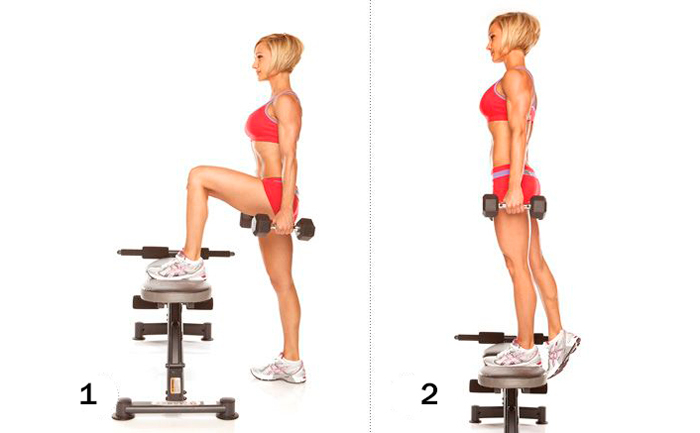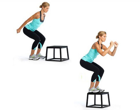 Найдите стабильный устойчивый постамент высотой примерно 30-40 см и запрыгните на него. Сделайте 4 подхода по 10 повторений. В случае если это упражнение начинает даваться вам легко, возьмите в руки гантели или наденьте на ноги утяжелители.