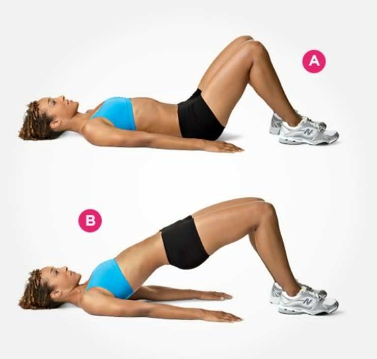 Как накачать попупри выполнении этого упражнения опирайтесь на руки, тогда нагрузка распределится равномерно, а позвоночный отдел не перенапряжется. Лягте на пол, вытянув руки вдоль туловища, согните ноги и придвиньте их как можно ближе к ягодицам. Теперь поднимайте таз, делая мостик и напрягая мышцы ягодиц. Можете задержаться в этом положении, если чувствуете эффект, например, дрожание. Делайте это упражнение «Лесенкой»: 3 подхода по 15, 12, 10 повторений.