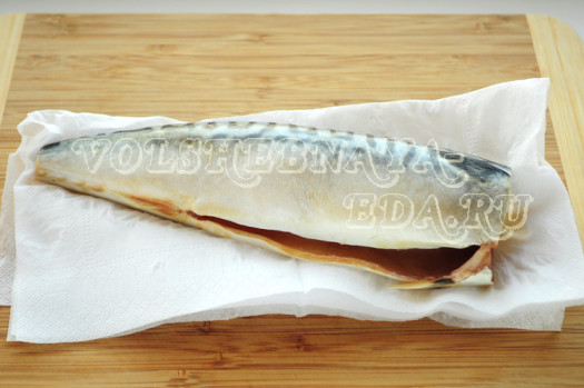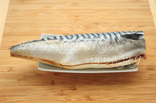 - Скумбрию выпотрошить, убрать голову и хвостовой плавник, отложить в сторону.