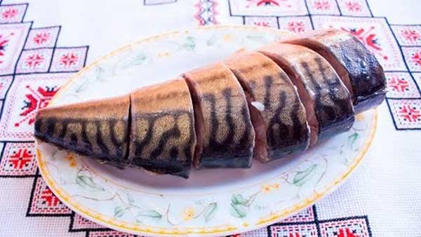 Рыба в готовом виде будет внешне похожа на копченую. Во время приготовления скумбрия тепловой обработке не подвергается. Засолить скумбрию можно целиком и во время подачи разрезать на кусочки.