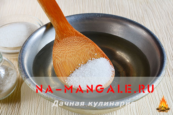 - Специи, сахар и соль положить в кастрюльку, залить горячей водой, поставить кипятиться на 3 минуты.