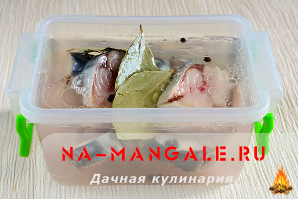 Ещё один способ, как замариновать скумбрию в домашних условиях быстро, — приготовить особый рассол.