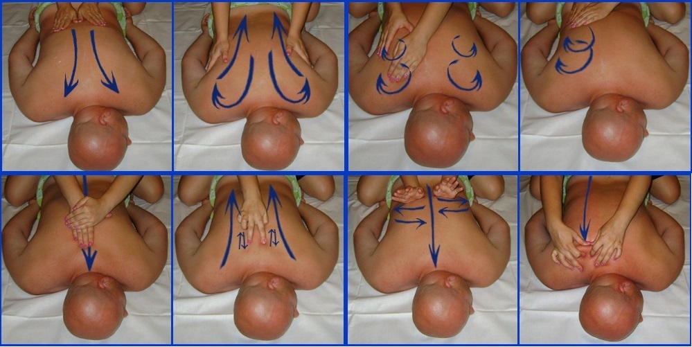 Массажные движения нужно выполнять ладонью, сложенной в виде ложки. Легкие похлопывания нужно делать в области почек и костей. - Колебательные движения.