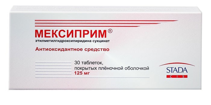 В лекарство входит действующее вещество этилметилгидроксипиридин, натрия метабисульфит, повидон, лактоза, полиэтиленгликоль, титана диоксид.