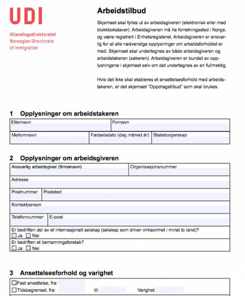 нужна специальная виза. Для её оформления нужно сначала пройти регистрацию и заполнить анкету на сайте норвежской миграционной службы UDI . Затем выбирается время и место подачи документов на визу в консульском учреждении (Москва, Мурманск, Архангельск) или визовом центре (Москва). Также ходатайствовать о рабочей визе можно в отделениях полиции Норвегии во время легального пребывания в стране.