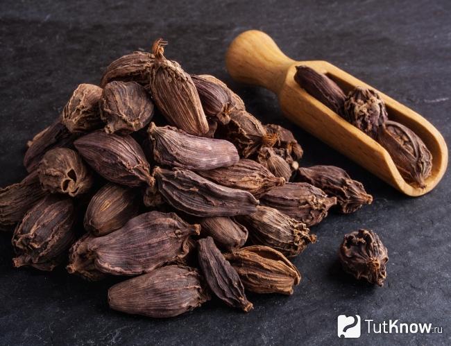 специю добавляют в пищу, насыщенную клетчаткой и маслами. Максимальный лечебный эффект достигается при сочетании кардамона с фенхелем, имбирем и .