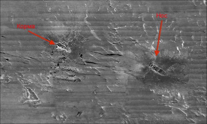 Было установлено, что нос и корма переломившегося лайнера расположены поодаль друг от друга, на расстоянии примерно 600 метров. При этом и корма, и нос серьёзно деформировались при погружении на дно, однако нос всё-таки сохранился лучше.