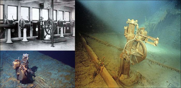 15. Сохранившиеся шлюпбалки, ванна в каюте капитана Смита и остатки пароходного гудка, который был установлен на одной из труб.