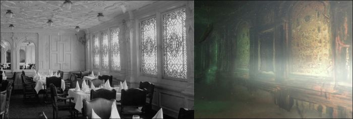 22. Ресторан и холл 1-го класса на палубе D отделяли от внешнего мира большие витражные окна, которые сохранились и до наших дней.