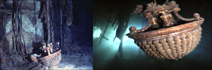 Перед съемками фильма «Титаник» режиссер Джеймс Кэмерон тесно работал с экипажем российского научного судна «Академик Мстислав Келдыш» и лично совершил двенадцать погружений с кинокамерой к останкам корабля на батискафах «Мир-1» и «Мир-2» – их можно видеть в документальных фрагментах фильма. Во время каждого погружения Кэмерон мог снимать всего пятнадцать минут из-за того, что лишь такое количество пленки умещалось в камере.