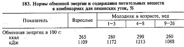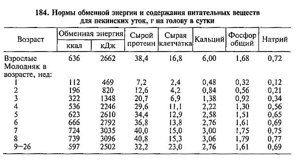 Таблица: Примерные нормы кормления уток (суточный рацион, г на голову):