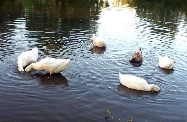 Идеальным вариантом при выращивании уток в теплое время года является возможность посещения ими природных водоемов или небольших рек с медленным течением. В таких условиях не надо особо задаваться вопросом: чем кормить уток? Птицы самостоятельно получают половину необходимого питания. В крайнем случае, уток можно выпускать на пастбище, где они могут щипать траву целый день. Тогда, птиц достаточно кормить дважды в сутки.