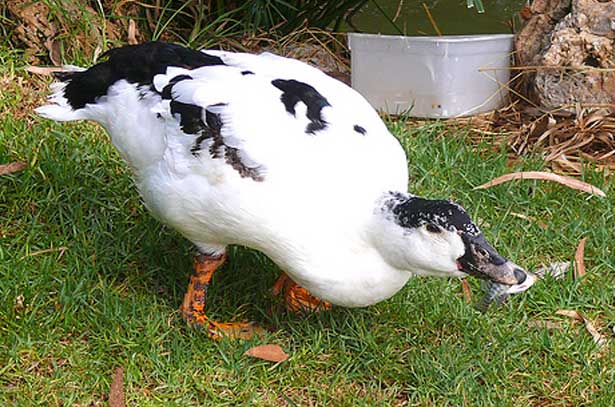 Взрослую утку кормят цельным зерном, а также дертью и сочными кормами, изготавливая влажные мешанки. Широко используют корнеплоды, пищевые отходы, зелень. Кормление планируют следующим образом: утром и днем скармливают влажные мешанки, на ночь дают зерно.