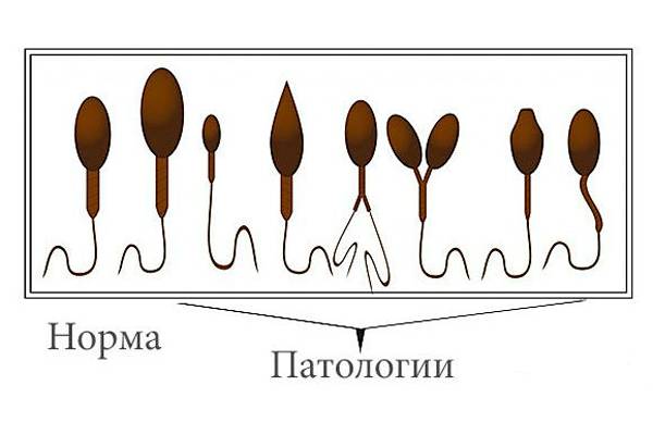 - аномальное строение сперматозоидов;