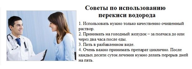 Общие правила употребления перекиси водорода: