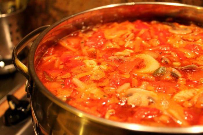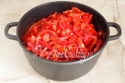 - Еще через 5 минут можно положить в общую массу болгарский перец и томаты. Все вместе должно кипятиться около 15-20 минут.