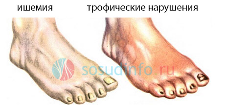 связывают с атеросклерозом, эндартериитом, диабетом. Она сопровождается утомлением и дискомфортом в ногах, которые сменяются болью. Конечность бледнеет, становится холодной, исчезает пульс на артериях. В тяжелой стадии появляются трофические язвы.