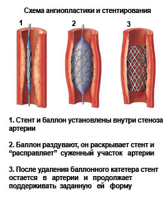 Малоинвазивными считаются со стентированием, . Ангиопластика состоит во введении в сосуд баллона, который раздувается и увеличивает просвет. Часто операция дополняется установкой стента. При эндартерэктомии удаляется часть внутренней оболочки артерии в месте, где наиболее выражен атеросклеротический процесс.