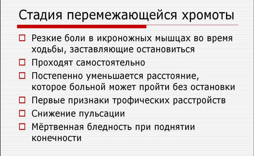 Признаки перемежающейся хромоты