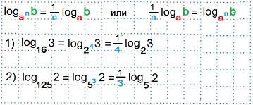 - Теорема в виде формулы приобретает следующий вид: log a q b n = n/q log a b.