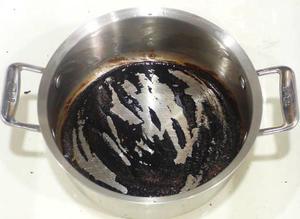 Содержимое кастрюли доводят до кипения, над паром размещают обгоревшее дно.