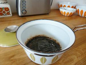 После того как раствор полностью остынет, чёрная сахарная плёнка отстанет сама.