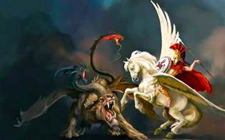 Беллерофонт – сын коринфского царя Главка, – убив одного коринфянина, вынужден был бежать из родного города к царю Тиринфа Пройту. Но, к несчастью, жена Пройта, Антея, влюбилась в Беллерофоита. Когда он отверг ее, она пришла в ярость и сказала мужу, что Беллерофонт якобы домогался ее. В гневе Пройт хотел убить Беллерофонта, но не посмел поднять руку на гостя. Пройт отправил его с письмом к царю Ликии Иобату в котором просил отомстить юноше за нанесенное оскорбление. Иобат, прочитав письмо, послал Беллерофонта на верную гибель, велев убить Химеру – огнедышащее чудовище с головой льва, телом козы и змеей вместо хвоста.