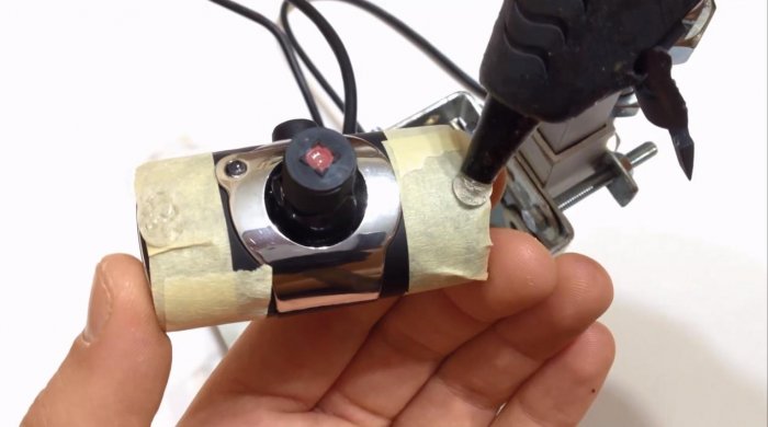 Обматываем стык объектива камеры с цилиндрическим корпусом изолентой. При желании его можно дополнительно проклеить термоклеевым пистолетом. На этом этапе измененный объектив уже можно проверить в действии.