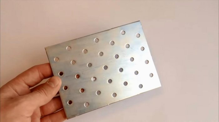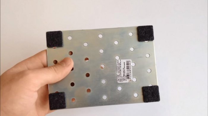 Плоскую перфорированную пластину обкладываем с тыльной стороны мягкими мебельными подпятниками. Их просто наклеиваем по углам прямоугольника.