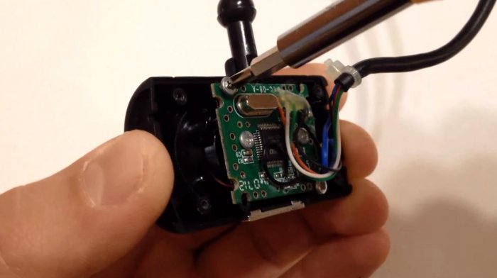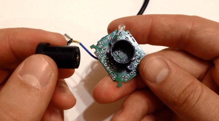 - Обеспечиваем питание. Для этого из провода, который будет соединять бывшую камеру и компьютер, выводим два провода +5V и -5V. После чего оптическую часть можно считать готовой.
