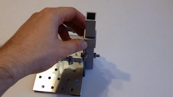 Штатив делаем из отрезка квадратной профильной трубы 15х15 мм. Его высота должна быть около 200-250 мм. Больше нет смысла делать, поскольку превышение отступа от смотрового стекла снижает качество изображения, а меньшее рискует быть засвеченным и некорректным.