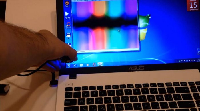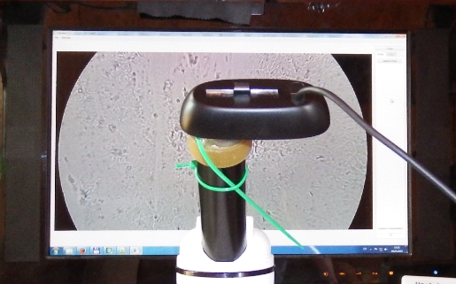 Невысокий светодиодный фонарик приспосабливаем под осветитель смотрового стекла. Он должен свободно влезать под смотровую панель микроскопа. Подключаем камеру к компьютеру, и через некоторое время изображение появится на экране монитора.