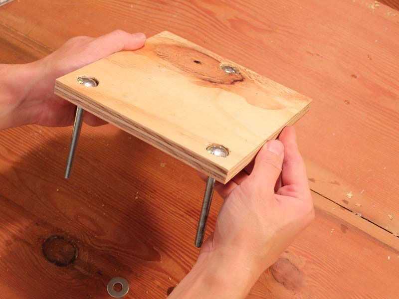 Вставляем болты в отверстия в основании. Их головки будут ножками стола.