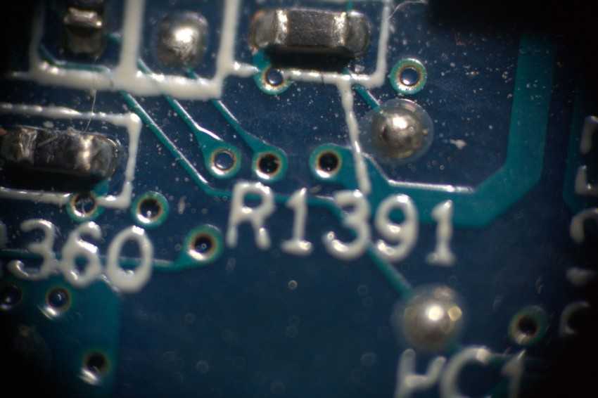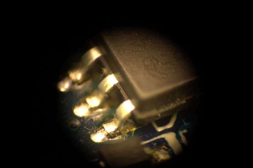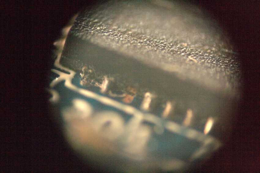 Ниже показано какое изображение получается с такого самодельного микроскопа для пайки. Видна большая глубина резкости — это нормально.