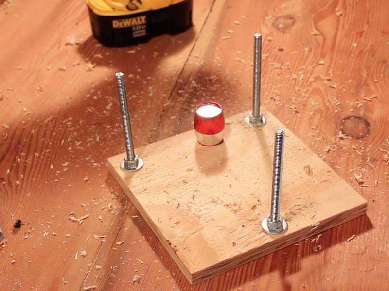 - Втыкаем болтики, которые должны пойти по резьбе и совпасть размером. Благодаря вкручиванию можно будет регулировать расстояние фокуса. Для удобства на болтики можно надеть бусинки или шарики.