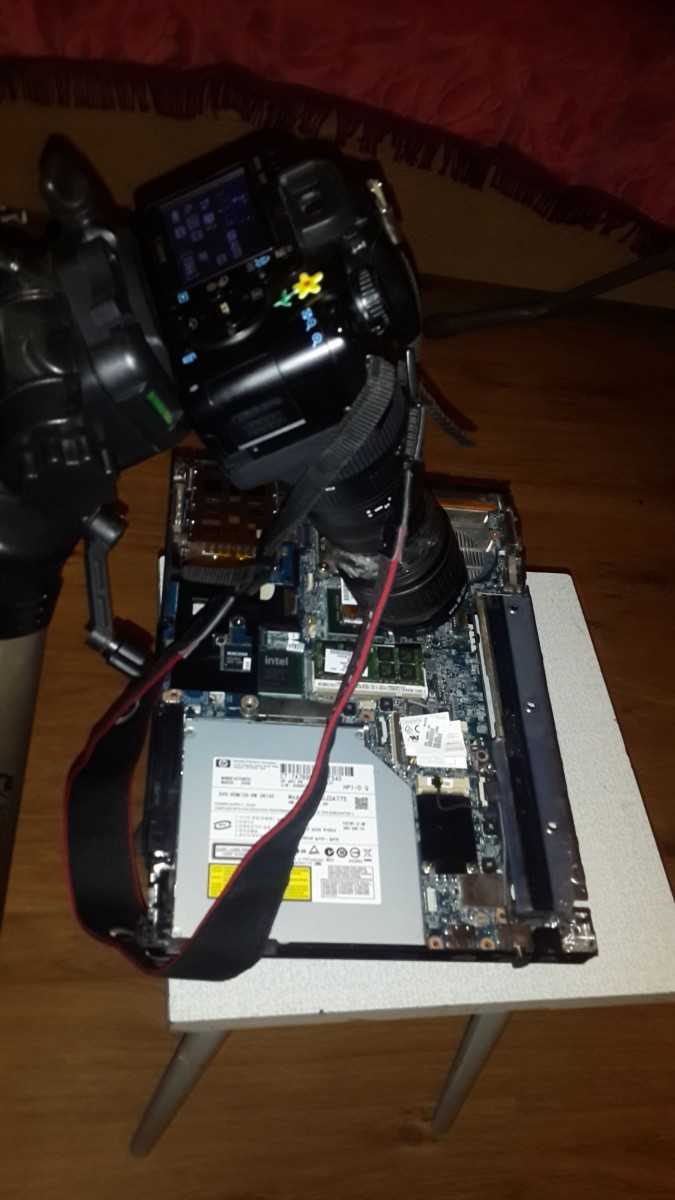 Один из самых простых и доступных способов, но при наличии всего необходимого. Понадобится фотоаппарат с объективом 400 мм, 17 мм. Ничего разбирать и вынимать не нужно, камера останется рабочей.