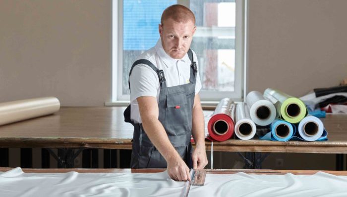 Закупкой материала лучше заниматься доверенному лицу, которое владеет базой данных поставщиков. Их можно найти по рекламным объявлениям в печатных и интернет-изданиях. Учитывайте разницу в материалах натяжных потолков. Тканевые потолки идут по гораздо более высокой стоимости, чем потолки из ПВХ-пленки. Но качество этих двух вариантов практически не уступает друг другу. Отличие тканевых потолков лишь в том, что ширина их полотен бывает разной. Полотна из пленки ПВХ имеют ширину не больше 5 м, поэтому их часто сшивают цельным куском на производстве. Но на качество такая технология не влияет.