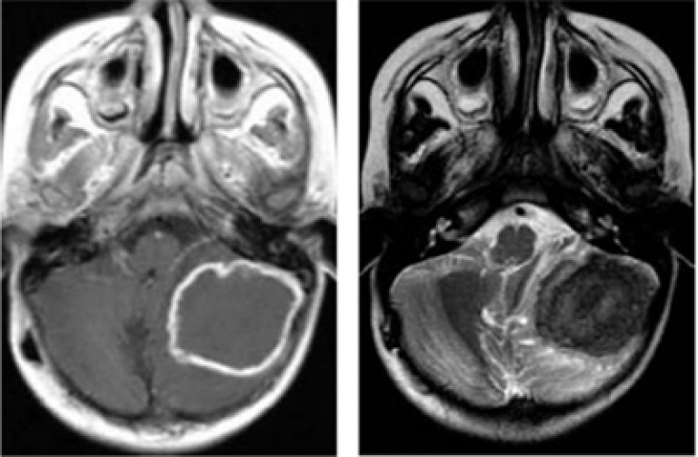 Заболевание начинается с повышения температуры тела и головных болей, усиливающихся в ночное время, головокружения, тошноты, рвоты, шума в ушах, светобо язни. Отмечается умеренно выраженное напряжение за тылочных мышц и положительный симптом Кернига. Ре гистрируются различные патологические рефлексы, гиперемия глазного дна и отек дисков зрительных нервов. Спинномозговая жидкость прозрачна или слегка мутнова та, реже наблюдается незначительная ксантохромия, коли чество белка увеличено до 1,2%, цитоз от (200…400) 106/л до 109/л. Глобулиновые и серологические реакции в лик воре положительные. В разгар заболевания может насту пить глухота, присоединяются сосудистые расстройства, инсульты с эпилептиформными припадками, парезы и параличи черепных нервов: лицевого, глазодвигательно го, отводящего. Прогноз благоприятен: во время начатая специфическая терапия быстро приводит к излечению, не оставляя, как правило, стойких изменений.
