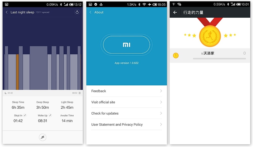 Для начала работы с браслетом необходимо установить фирменное приложение MiBand (小米手环), скачав его из официального маркета компании. Приложение не русифицировано, языки интерфейса: английский и китайский. В настоящее время компания работает над локализацией для русского языка.