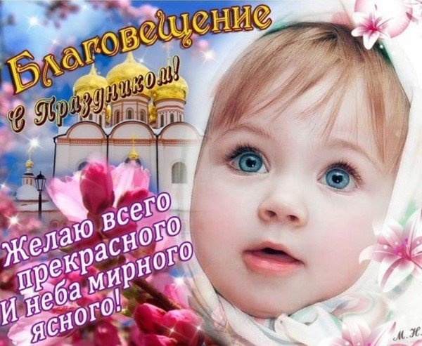 Благовещение Пресвятой Богородицы – прекрасный повод проявить внимание к своим близким и отправить им в качестве поздравления трогательную картинку, открытку или фото. Такие милые подарки-поздравления обязательно оставят след в сердце адресата и напомнят об истинных ценностях жизни. Подарите своим близким и дорогим вашу заботу в этот светлый праздник – с помощью нашей подборки красивых картинок, фото и открыток к этому великому религиозному празднику. А несколько поздравительных слов с пожеланиями радости и счастья затронут самые тонкие струны души. Радуйте друг друга – благая весть пришла!