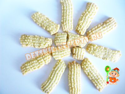 Данный рецепт очень интересен, так как для него нужна консервированная кукуруза. Ее Вы можете сделать заранее самостоятельно либо же купить в магазине. Но внимательно читайте состав продукта, ведь Вы будете готовить печенье для ребенка.