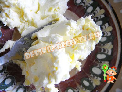 1. Сливочное масло нам понадобится не холодное: его лучше заранее вынуть из холодильника и поставить в теплое место. Когда масло размягчится, можно переложить его в миску и вилкой размять до однородной массы.